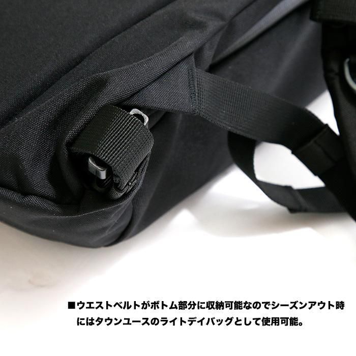 ・ウエストベルトがボトム部分に収納可能なのでシーズンアウト時にはタウンユースのライトデイバッグとして使用可能。