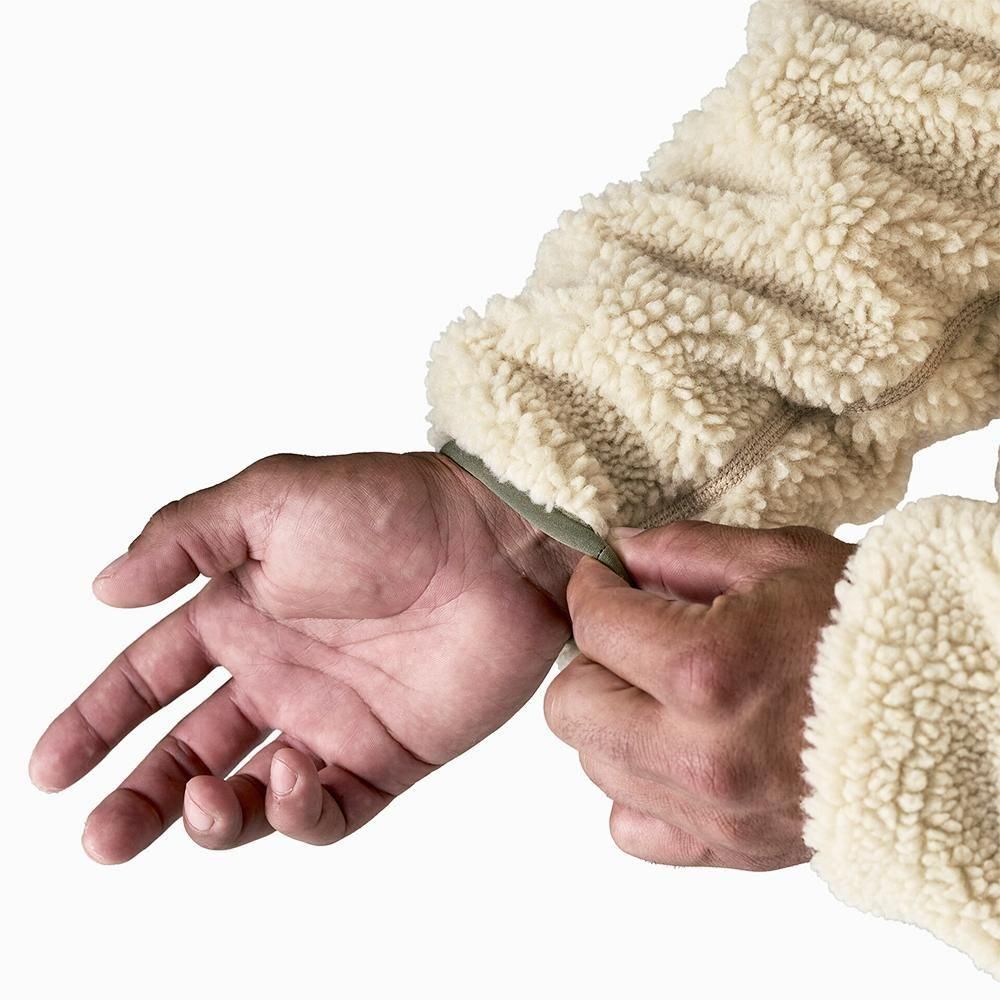 オーシャンサイクルの認証済みのリプリーブ・リサイクル・ポリエステル100%の6ミリ厚パイル・フリースで作ったソフトで温かい防風性ジャケット。