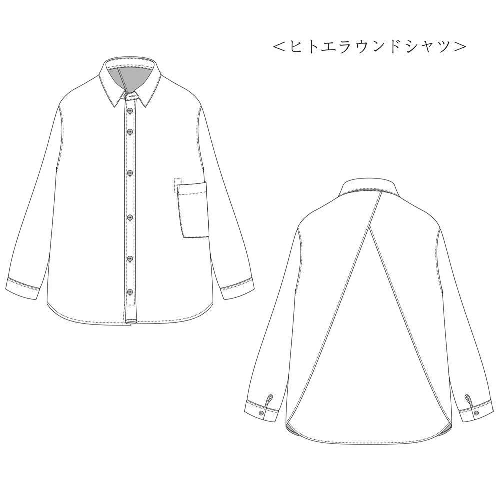 うなじから左右の脇裾にスーッと切り替えが入るヒトエラウンドと名付けたシャツ。